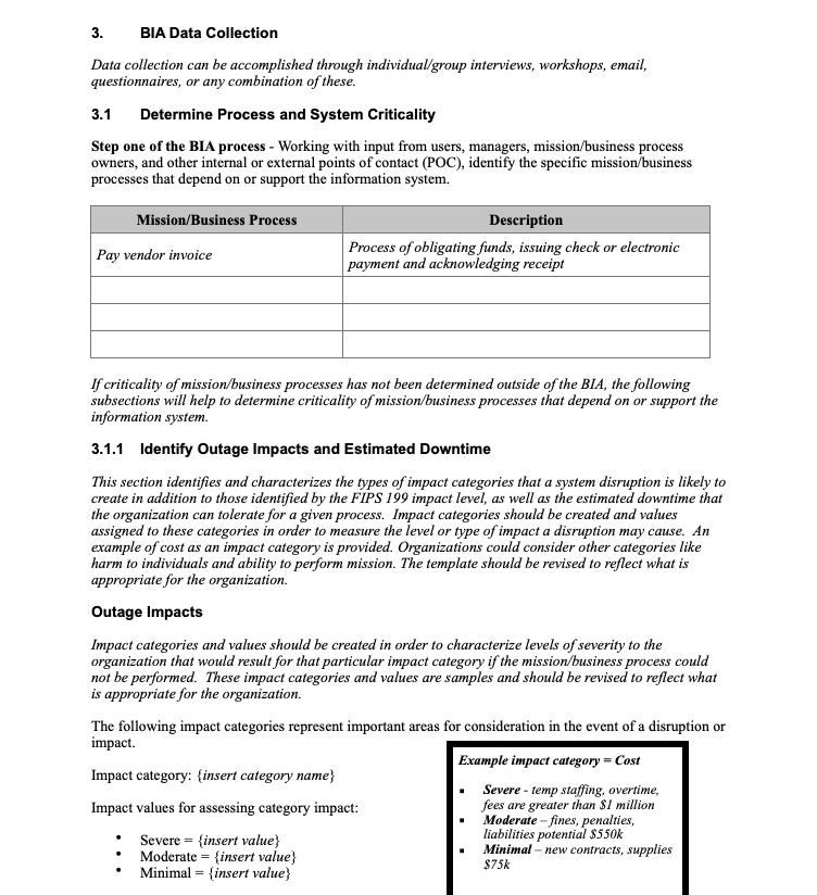Mission Essential Functions (MEFs) | The key activities or processes that an organization must perform to maintain its core operations and fulfill its mission | A financial institution’s mission essential functions might include processing customer transactions, maintaining account balances, and ensuring regulatory compliance. |