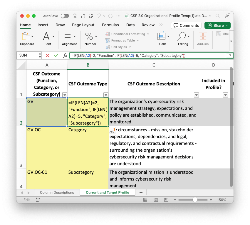 Transform this CSF 2.0 Organizational Profiles Spreadsheet at NIST.gov…