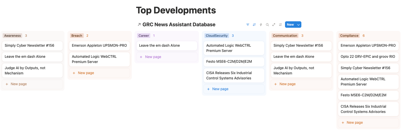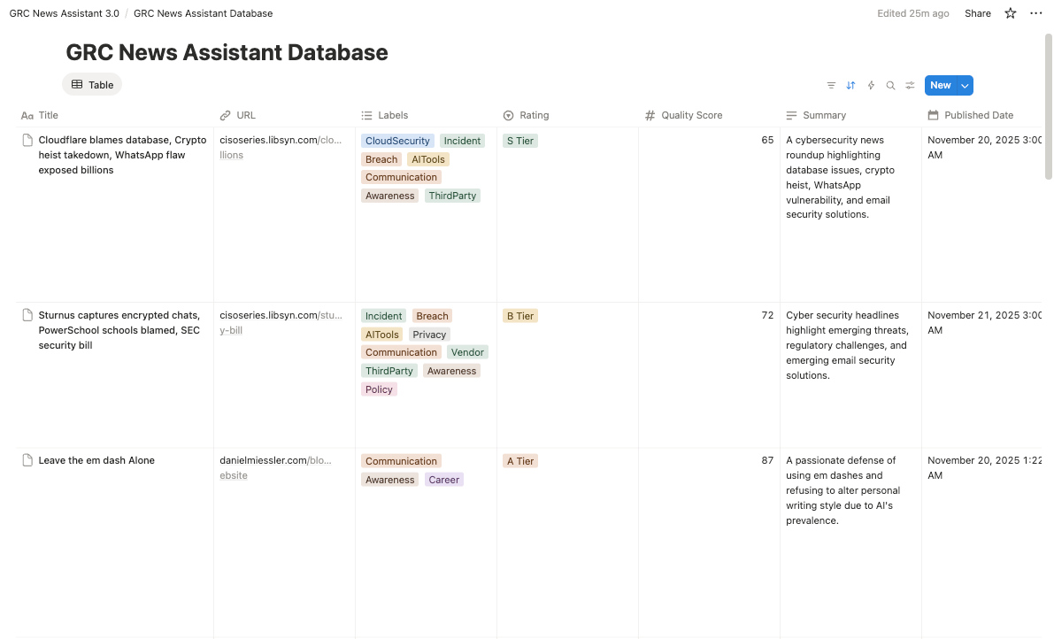 Once running, your Notion database becomes a powerful GRC intelligence hub: