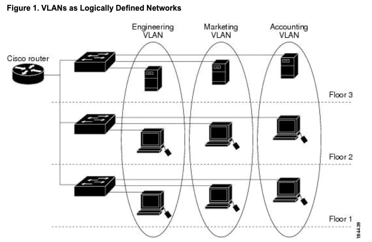 Traditional View: Departments segregated by function (e.g., Accounting subnet separate from HR)